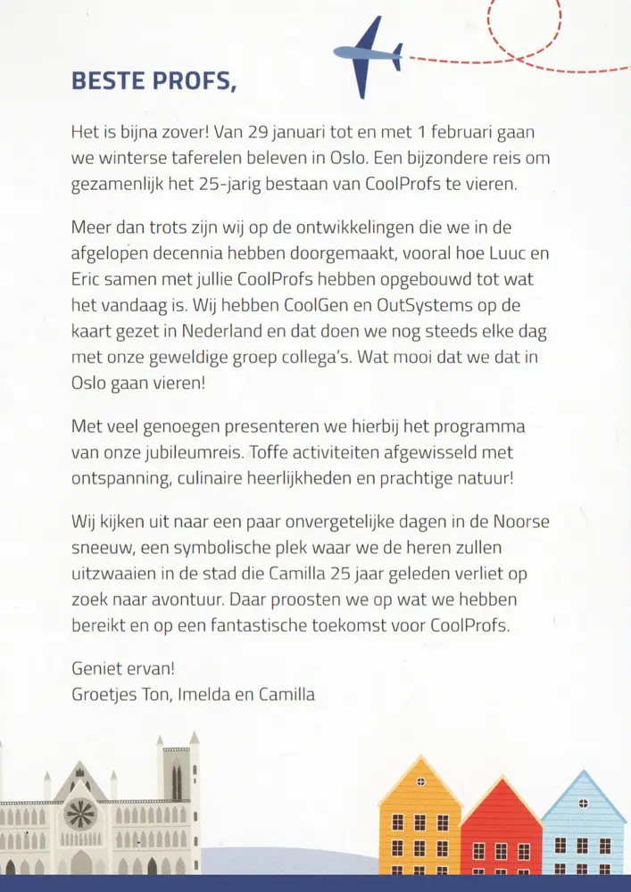 CoolProfs bestond 25 jaar! Natuurlijk houden we vaker een gezellig personeelsuitje, maar deze keer was wel iets bijzonders. Want wie had bij het ontstaan van CoolProfs, in 2000, bedacht dat we zo groot zouden groeien en zo succesvol zouden worden. Onze CEO, Camilla Ramberg, komt oorspronkelijk uit Noorwegen. Zo ontstond het idee om samen met Wyt incentive travel & business events een meerdaagse reis naar Oslo te organiseren. In januari. Okee, het was even doorzetten, hartje winter in Noorwegen, maar we hebben het overleefd en met de teambuilding zit het dus wel goed!